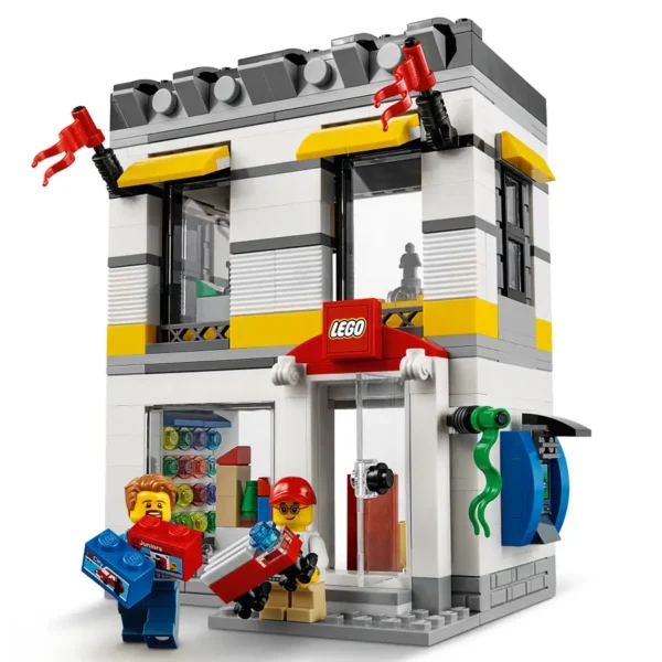 LEGO Creator, Budynki składa się z 362 elementów. W zestawie pełna detali fasada z przezroczystymi otwieranymi drzwiami, 3 okna, 3 proporczyki oraz szyld sklepowy ze znakiem LEGO®. Model ma ukazane ze szczegółami wnętrze, w nim ścianę z modelami do wybrania, stojak z miniaturkami, półki pełne pudełek LEGO oraz ladę i kasę. Klocki kompatybilne z innymi zestawami: Tak. Zabawka posiada certyfikaty: CE