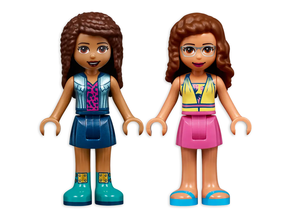 W tej leśnej zabawce na dzieci czeka scenka z wodospadem oraz postacie LEGO Friends Andrei i Olivii. Są tam także ciekawe detale, takie jak pianka na patyku i ognisko, więc dzieci mogą wcielać się w role i wymyślać rozmaite historie — na przykład o odkrywcach znajdujących klejnot ukryty za ruchomym wodospadem. Model nie jest duży, więc nie trzeba go rozkładać i może być zawsze gotowy do zabawy.