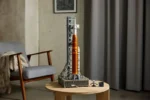 Ta wierna replika przedstawia prawdziwe systemy startowe i zawiera wysuwane przewody wieży startowej, wspornik rakiety i mostek dla załogi, odłączane dopalacze na paliwo stałe i stopnie rakiety. W zestawie jest także model modułu Orion z rozkładanymi panelami słonecznymi, które można umieścić wewnątrz rakiety lub na osobnej podstawce. Całość uzupełnia tabliczka z napisem. Model świetnie sprawdzi się jako ozdoba do domu lub biura.