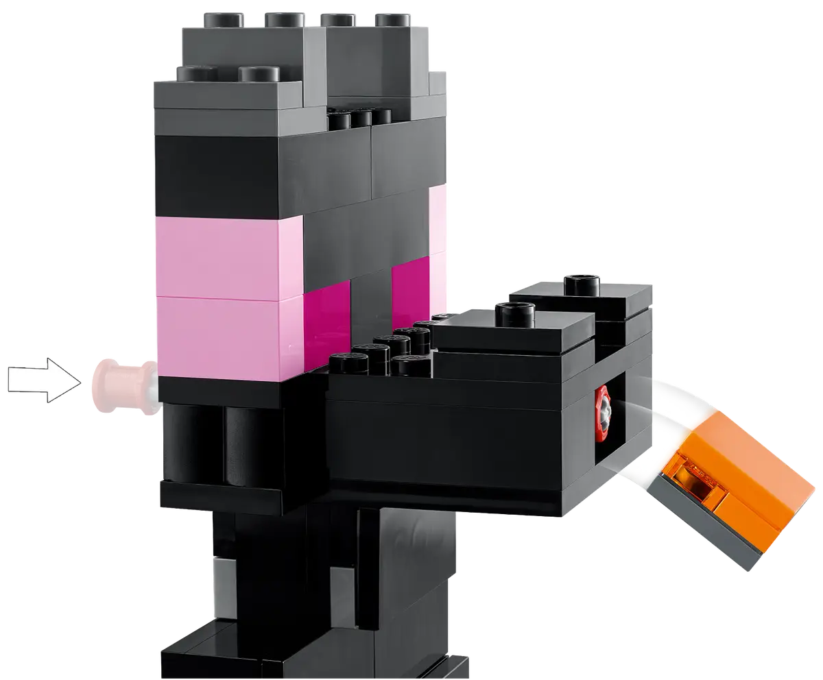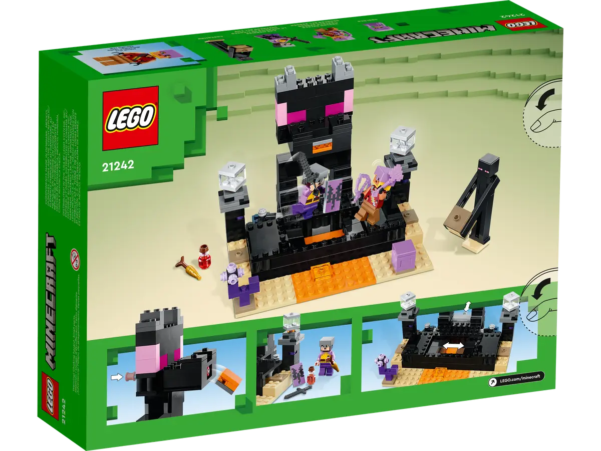 Gracze w Minecrafta zmierzą się ze sobą na Arenie Endu jako wojownik Endu i smoczy łucznik. Do ich dyspozycji będą zbroje i bronie, ale by przetrwać, muszą unikać także innych niebezpieczeństw. Wyrzutnia posyła bloki lawy prosto z pyska Smoka Kresu, który góruje nad areną, a ruchome zapadnie otwierają się, ujawniając morze lawy pod stopami wojowników. Dodatkowe możliwości zabawy zapewnią enderman i shulker, czyli moby z Minecrafta, a także znajome akcesoria z gry, takie jak złota marchewka i eliksir. Ponadto można wykorzystać aplikację LEGO Builder, w której można powiększać i obracać model podczas budowania.