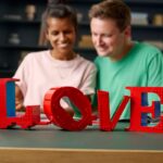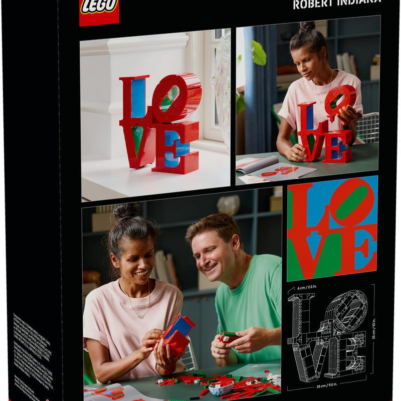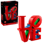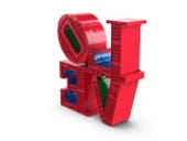 Model rzeźby LOVE w 3D to replika słynnego dzieła o podobnym wzornictwie i kolorach: czerwonym, niebieskim i zielonym.